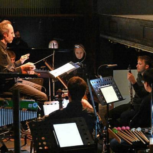Abschlusskonzert Pasticcio für Orchester, Geige und Klavier mit Videoprojektion.
